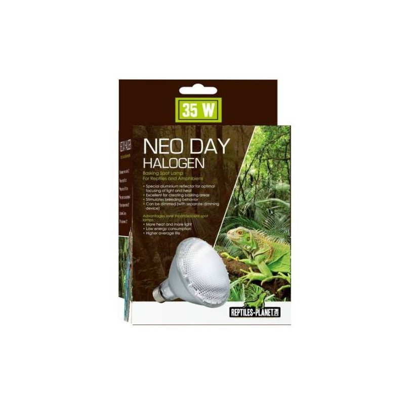 Cette lampe est utilisée en complément d’un tube ou d’une lampe émettrice d’UVB. Sa luminosité est douce, légèrement orangée, comparable au soleil de fin d’après-midi Son rôle est de créer un gradient de température associé à une forte intensité solaire dans le vivarium. Conseillé pour tous les reptiles. Spectre Lumière du jour.