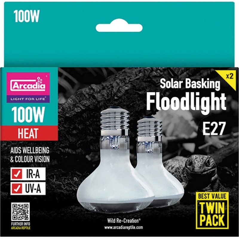 La lampe Arcadia Basking Solar Flood fournira de la chaleur ambiante à votre terrarium grâce à son rayonnement large. La lampe a une couleur chaude invitante et utilise des raccords E27 standard. Conçues pour fournir une chaleur de bonne qualité, et pouvant être utilisées avec un contrôleur thermostatique, ces lampes produisent des UVA supplémentaires essentiels pour favoriser le bien-être et la vision des couleurs et doivent être utilisées avec un système Arcadia Reptile UVB adapté à l'espèce.