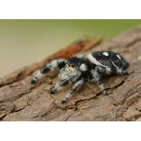 Vendu à l'unité  Phidippus cf regius ISLA JUVENTUD 4 mm Origine : Etat-Unis Alimentation :  Drosophiles, grillons, blattes... Maintenance : 20° à 26° pour un développement idéal. Taille : 3/5 mm