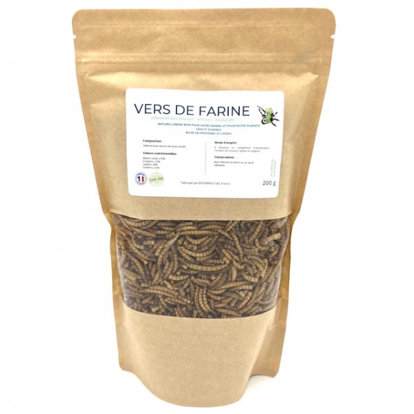 nourriture à multi ingrédients avec vers de farine séchés et grillons séchés destinée à l'alimentation quotidienne de dragons barbus central, dragons d'eau Chinois, geckos léopard, tortues semi-aquatiques et aquatiques, moniteurs et autres lézards se nourrissant avec des insectes