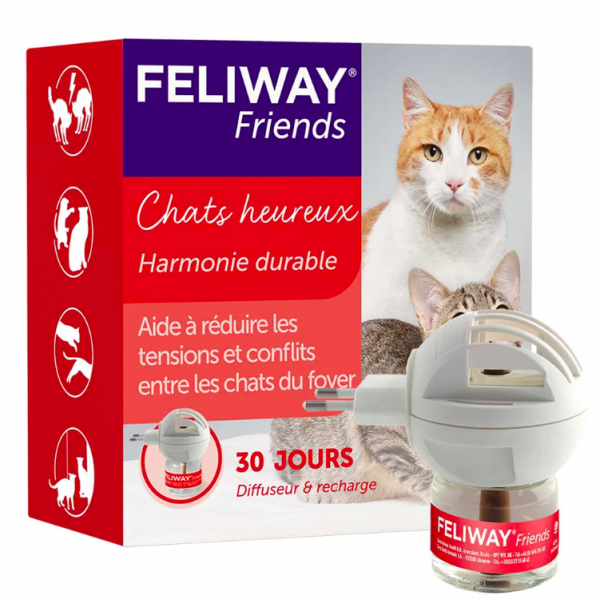 FELIWAY Friends aide vos chats à mieux s’entendre à la maison. Son effet continu assure une bonne entente permanente.