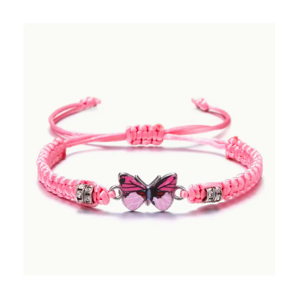 Bracelet en Corde Tissée à la Main Ajustable avec Pendentif Papillon Coloré - Style Bohémien Vintage