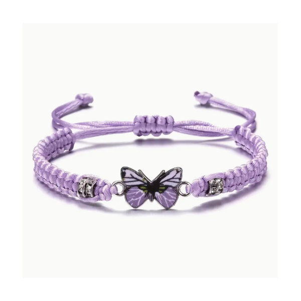 Bracelet en Corde Tissée à la Main Ajustable avec Pendentif Papillon Coloré - Style Bohémien Vintage