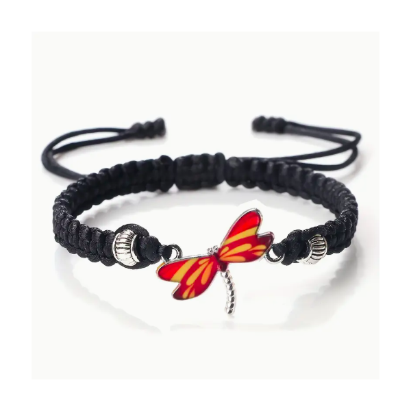 Bracelet en Corde Tissée à la Main Ajustable avec Pendentif Libellule Coloré - Style Bohémien Vintage