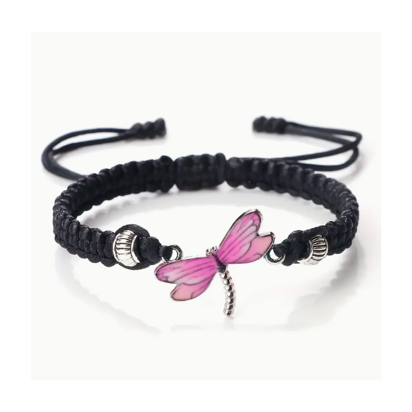 Bracelet en Corde Tissée à la Main Ajustable avec Pendentif Libellule Coloré - Style Bohémien Vintage
