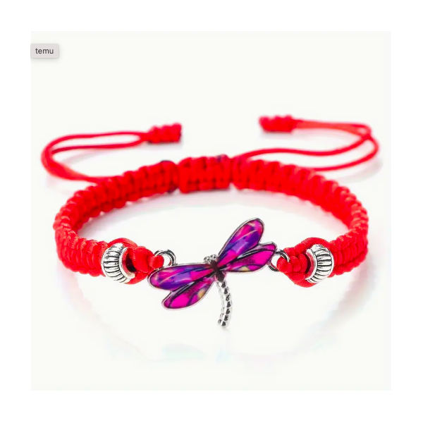 Bracelet en Corde Tissée à la Main Ajustable avec Pendentif Libellule Coloré - Style Bohémien Vintage