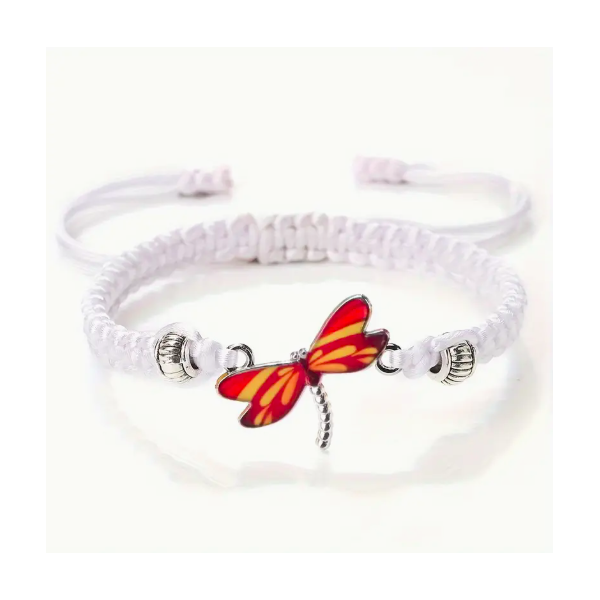 Bracelet en Corde Tissée à la Main Ajustable avec Pendentif Libellule Coloré - Style Bohémien Vintage