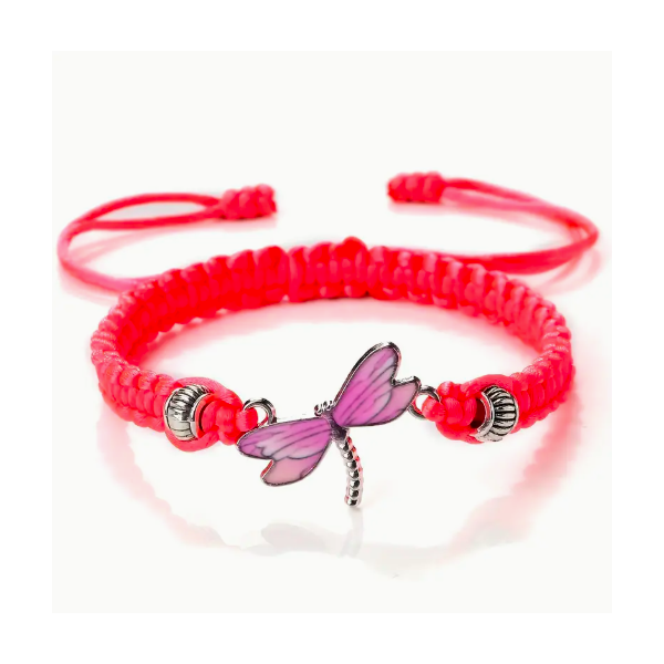 Bracelet en Corde Tissée à la Main Ajustable avec Pendentif Libellule Coloré - Style Bohémien Vintage
