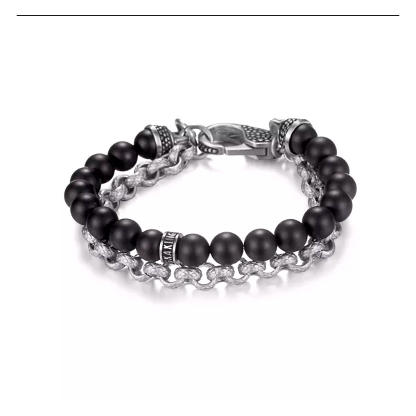 ENSEMBLE DE BRACELET HOMME onyx noir mat en pierres de 8 mm avec chaîne royale en acier inoxydable combinée à un fermoir de homard reptile comme un ensemble