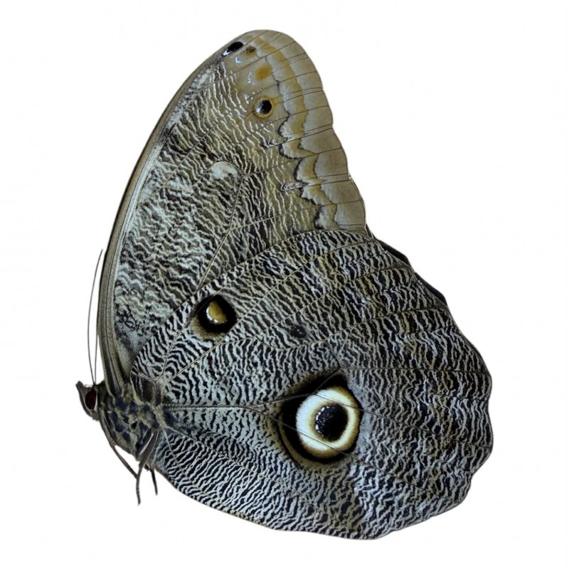 Caligo illioneus oberon femelle A1 Colombie Vendu non étalé, en papillotte avec datas complets