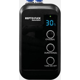 Un pulvérisateur d'eau a plusieurs fonctions dans un terrarium. La pulvérisation automatique du terrarium augmente non seulement l'humidité, mais assure également une bonne croissance des plantes. En outre, de nombreux animaux, notamment ceux qui vivent dans les arbres, préfèrent les gouttes plutôt que de boire dans un réservoir d'eau. Ce pulvérisateur d'eau de pluie compact est facile à accrocher sur un meuble ou un terrarium. Réglage simple avec 3 boutons : puissance de pulvérisation, durée de pulvérisation et cycle. Vous pouvez utiliser un réservoir d'eau de votre choix, ce qui rend son utilisation beaucoup plus flexible. Livré avec support de suspension, 2 buses en cuivre et tuyau. Extensible jusqu'à 4 buses (avec R3100340 en option).