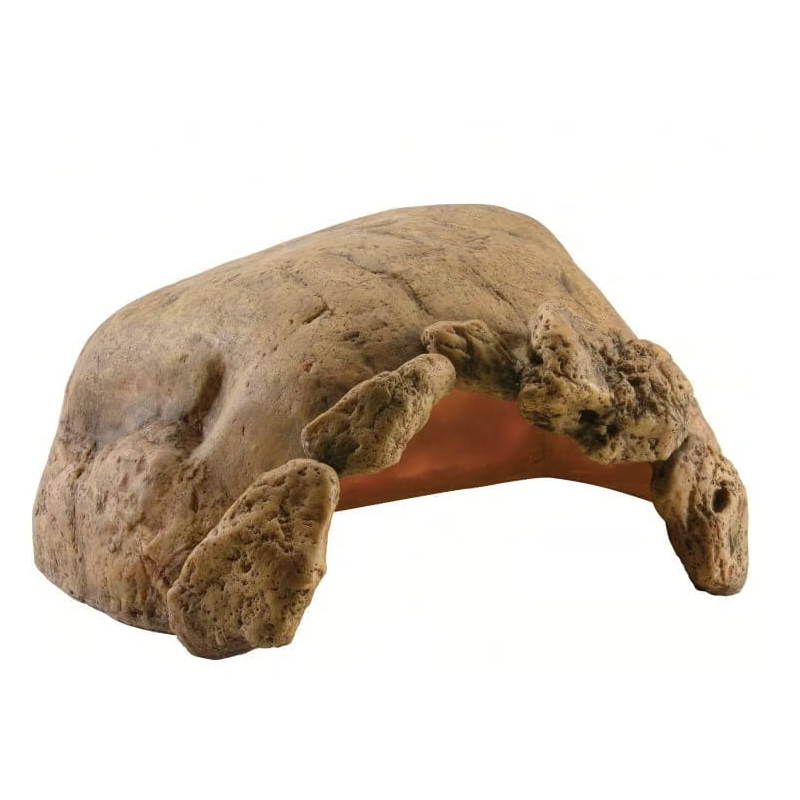 L’ajout d’une cachette adéquate à un terrarium naturel est souvent oublié. Sans un endroit sûr où se cacher et dormir, les reptiles et les amphibiens deviennent facilement stressés, ce qui perturbe leurs activités et leur appétit. Comme elle comporte une grande surface pour se cacher et que son design de galets est très réaliste, la grotte Exo Terra pour reptiles ressemble énormément aux cachettes naturelles des reptiles et des amphibiens. Elle leur procure un abri, en plus d’un endroit très frais et humide dans le terrarium.