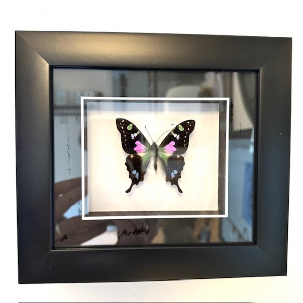 Sublimez votre intérieur avec ce magnifique Morpho didius, célèbre pour ses ailes d’un bleu métallisé intense et son éclat fascinant. Ce papillon naturel est présenté dans un cadre noir élégant de 20 x 25 cm, prêt à être accroché ou posé pour une mise en valeur immédiate. Chaque spécimen est soigneusement préparé et encadré à la main, garantissant une...