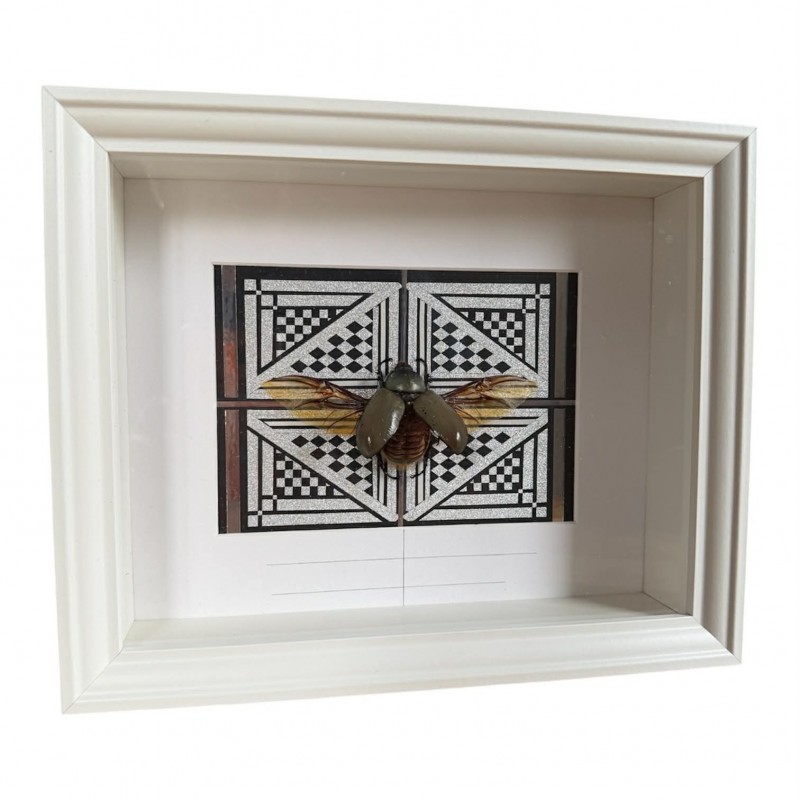 Chaque spécimen est soigneusement préparé pour préserver sa morphologie massive et ses détails naturels. Le cadre blanc offre une touche moderne et lumineuse, mettant en valeur l’esthétique impressionnante de cet insecte majestueux.