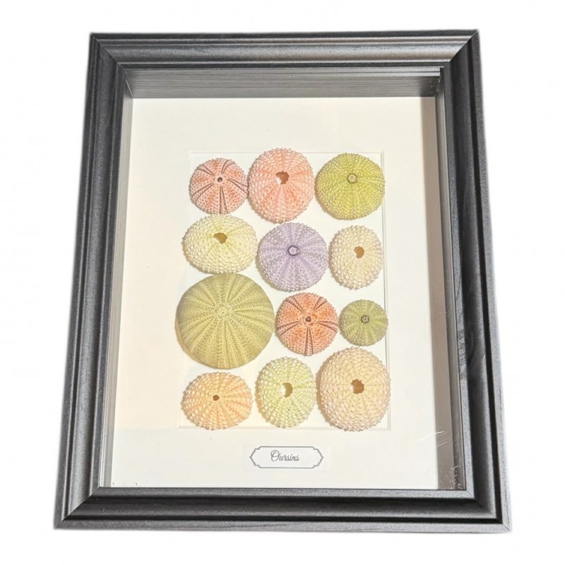Élément emblématique des cabinets de curiosités marins, cet oursin naturalisé est présenté dans un cadre noir élégant au format 20 × 25 cm. Sa structure géométrique naturelle et ses détails délicats en font une pièce à la fois scientifique et décorative, idéale pour une mise en valeur murale raffinée.