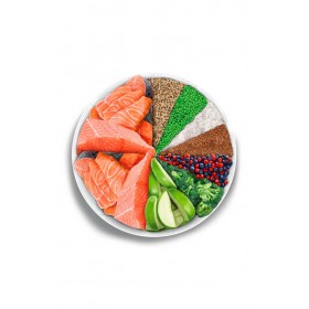 COMPOSITION : saumon frais préparé 55 % (nous utilisons 85 kg de saumon frais préparé pour produire 100 kg de notre produit), pois verts entiers, protéine de pomme de terre, protéine de riz, fibre de pomme, levure (Saccharomyces cerevisiae), hydrolysat de poisson, minéraux, lignocellulose , protéine de pois, riz brun, tapioca, psyllium, poudre de malt d'orge, citrouille déshydratée, chou frisé déshydraté, krill antarctique, algue laminaire, spiruline, paroi cellulaire de levure hydrolysée (source de MOS) 1 000 mg/kg, chicorée (source de FOS) 1 000 mg/kg, quinoa 1 000 mg/kg, brocoli déshydraté 1 000 mg/kg, myrtilles 1 000 mg/kg, canneberges 1 000 mg/kg, gingembre, extrait de mandarine, curcuma 500 mg/kg, romarin, Yucca schidigera.
