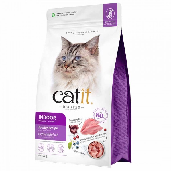 Catit INDOOR Poultry Recipe est le régime quotidien idéal pour les chats d'intérieur, stérilisés et moins actifs. Composée de vraie viande de dinde et de poulet, de légumes nutritifs et d'un mélange de super-aliments, notre recette aide votre félin à prospérer et à rester en bonne santé. Tous nos ingrédients sont naturels et d'origine locale, et notre cuisine high-tech permet des températures de cuisson plus basses pour préserver davantage les nutriments et la saveur.