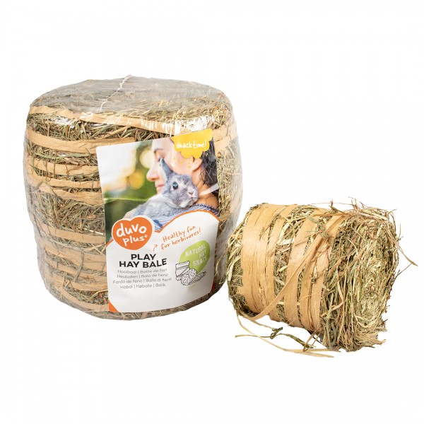 Découvrez la balle de foin Play de duvoplus. Cette balle de foin est enroulée automatiquement et attachée avec un ruban de cellulose. Les rongeurs s'amusent pendant des heures à essayer de défaire et de dérouler le rouleau eux-mêmes. De plus, 100% naturel et riche en fibres pour une hygiène dentaire optimale. Cette balle de foin est l'alternative parfaite à l'offre de foin en vrac. Jouer et grignoter en même temps !