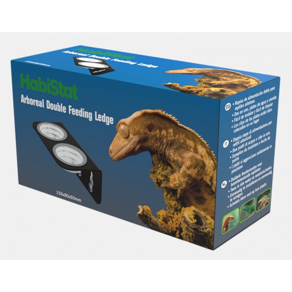 L'Arboreal Feeding Ledge HabiStat offre aux espèces arboricoles un moyen naturel de se nourrir et de s'hydrater. Disponible en simple ou double écuelles. L'unité elle-même est fabriquée en acrylique noir tandis que les gobelets et les ventouses sont transparents, offrant une visibilité à 360 degrés du contenu sans déranger l'animal. De grandes ventouses vous permettent de le fixer dans un endroit approprié dans votre terrarium en verre.