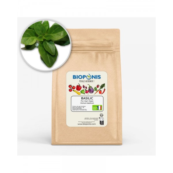 Le basilic fin vert est une plante aromatique compact en forme de dôme. Ses feuilles sont très odorantes et son goût prononcé. Il peut être utilisé autant dans les salades qu’avec des légumes.
