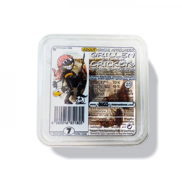Boite de 40 Pièces en Taille 6 = 1,0-1,5 cm Le grillon, Achetae domestica,  Nous vous proposons 4 tailles de grillons, afin de bien respecter les proportions insecte/animal. La taille correspond au nombre de mues que le grillon a effectué depuis sa naissance :  - Taille 2 : environ 1-2 mm (2 mues) Mico - Taille 3 : environ 5-7 mm (3 mues) Petit - Taille 4...