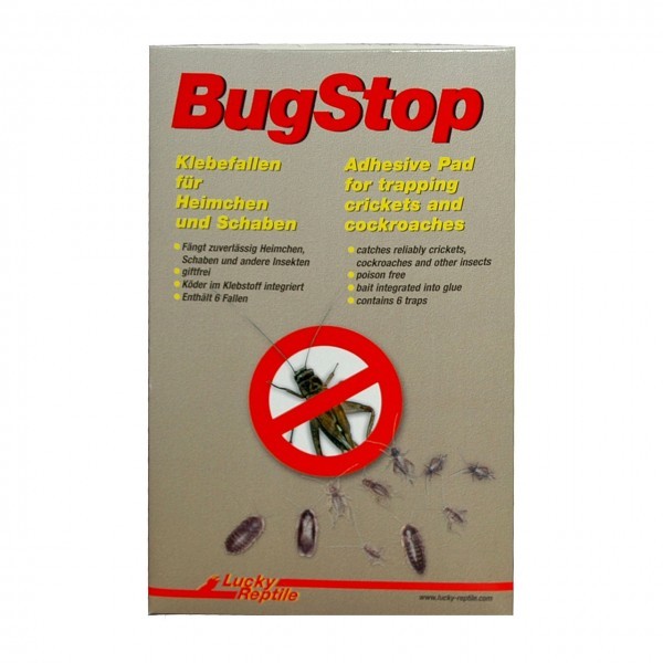 Le Bug Stop est un piège adhésif pour grillons, blattes, poissons d'argent et autres insectes. Un attractif est intégré dans la surface adhésive, qui attire les insectes, qui adhèrent ensuite à la surface adhésive. Il doit être installé à proximité de la zone infestée ou à des points stratégiques (ex : près du terrarium, de la cuisine).