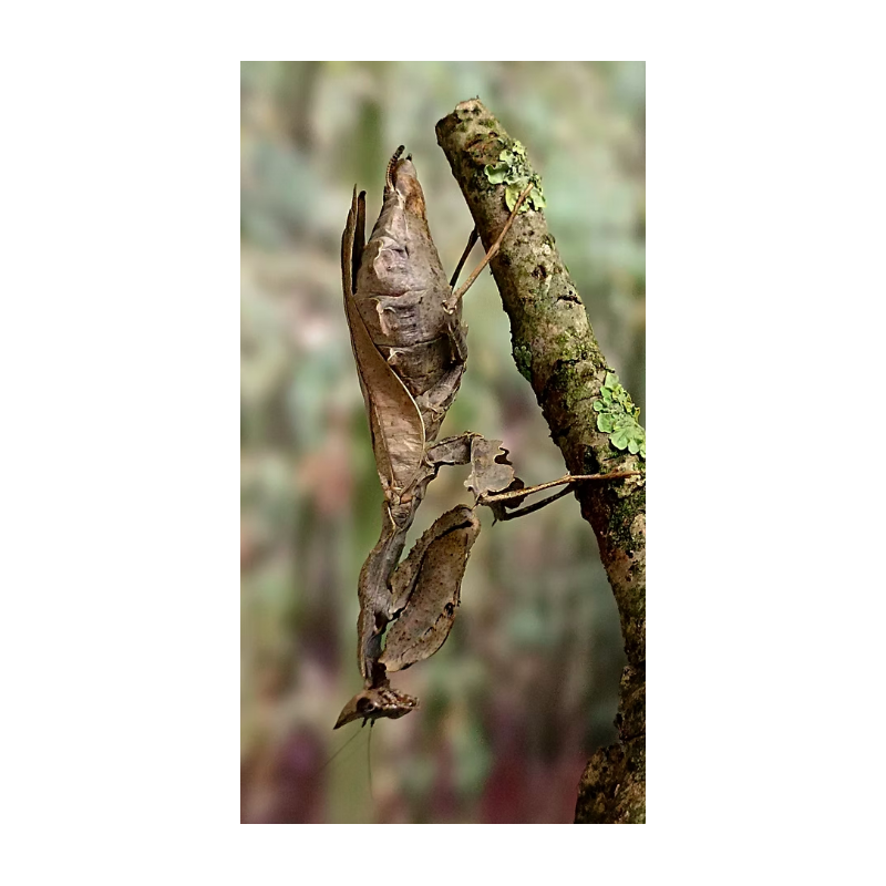 1 x Deroplatys Desiccata L5 Origine : Asie du Sud-Est Température de jour: 23-26 C Température de nuit: 18-22 C Numéro de brumisation: 2 à 3 fois par semaine Type de substrat: Sol de coco Humidité du substrat: Toujours un peu humide Type de proie / insectes nourriciers: L1-3 - Drosophila melanogaster L3-5 - Mouche L5 + - Criquet, Blattes red runner...