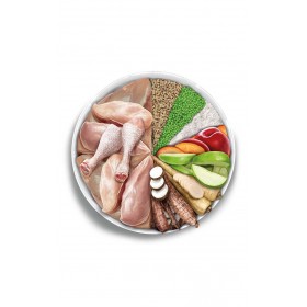 COMPOSITION : poulet frais 71%, riz, petits pois, protéines de pomme de terre, pomme, quinoa 2%, foie de poulet hydrolysé, panais 1%, levures, minéraux, huile de poisson, graines de lin, huile de poisson, prunes 0,30%, curcuma 0,10%, inuline (FOS) 0,10%, mannan-oligosaccharides (MOS) 0,10%, glucosamine, sulfate de chondroïtine, Yucca schidigera.