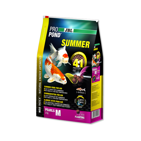 • Contient maïs, saumon, soja, crevettes, gammares et spiruline pour des koïs vigoureux et en bonne santé (température de l'eau 20 à 30 °C).