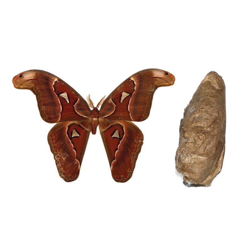 Cocons vendu à l'unité Origine :  Le papillon adulte ne se nourrit pas, donc pas besoin de nectar. Pour les chenilles, il faudra prendre essentiellement de Ligustrum sp. (= troènes), lilas, frêne, ricin, saules Attention, ne jamais vaporiser d'eau sur les feuilles ou les chenilles!