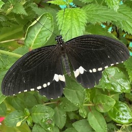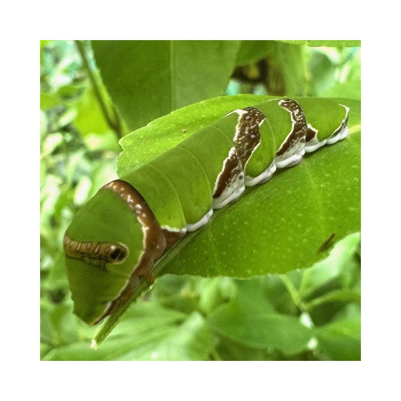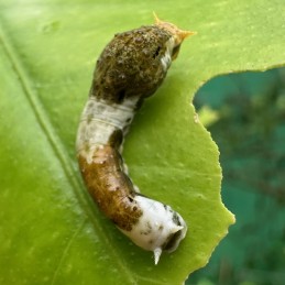 Chenille: la chenille se nourrit des feuilles de la plante hôte agrumes, oranger du Mexique. Elle passe par cinq stades larvaires avant de se transformer en chrysalide.