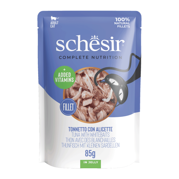 Schesir améliore la nutrition naturelle grâce à des aliments humides pour chat qui réunissent des ingrédients de grande qualité dans des repas complets et équilibrés. Chaque recette est riche en vitamines, en minéraux et en taurine, autant d’éléments indispensables au bien-être et à la vitalité de votre chat, et est conçue pour lui apporter l’intégralité des nutriments essentiels dont il a besoin tout en répondant aux exigences de goût et de fraîcheur des palais les plus intraitables. À la différence des autres produits complets, Schesir garantit des repas authentiques, composés de filets de thon soigneusement sélectionnés, cuits à la vapeur et servis en gelée avec de délicieuses blanchailles. Nos recettes offrent une alimentation équilibrée avec une valeur nutritionnelle plus élevée que les aliments complémentaires. Même seuls, les aliments humides Schesir complets constituent la solution optimale pour fournir à votre chat tous les nutriments dont il a besoin pour rester en bonne santé. Ils lui apportent la juste quantité de protéines, de liquides, de graisses, de vitamines et de minéraux pour répondre à ses besoins quotidiens. Par rapport aux aliments complémentaires, les aliments humides complets Schesir : fournissent la juste quantité de vitamines, de minéraux et d’acides aminés, des micronutriments indispensables afin de couvrir les besoins quotidiens de votre chat ; peuvent également être utilisés seuls, sans les combiner avec les croquettes ; apportent des macronutriments semblables à ceux des proies naturelles du chat. Par rapport aux aliments complets concurrents, les aliments humides Schesir complets : sont composés d’aliments le moins transformés possible ; se composent de véritables filets de thon transformés à la main ; présentent une liste d’ingrédients simple et courte. Choisissez Schesir pour une nutrition complète et naturelle qui allie la qualité et le bien-être au goût que votre chat a toujours adoré.