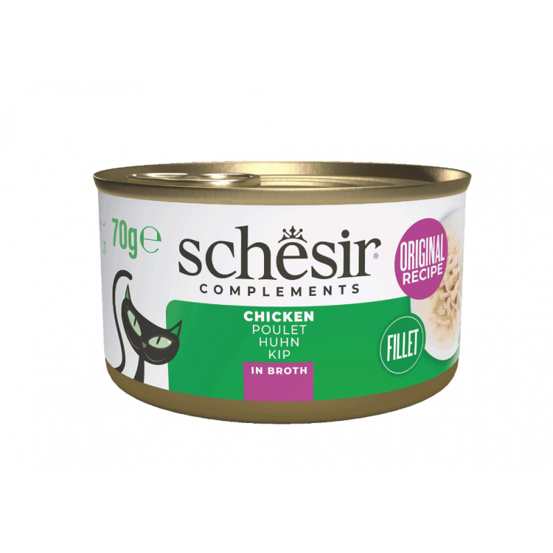 Schesir constitue le meilleur choix si vous visez une nutrition parfaite. Jour après jour, la santé de nos compagnons à quatre pattes est toujours notre priorité. Nous créons des recettes et des formats adaptés aux caractéristiques physiologiques et aux besoins nutritionnels spécifiques de votre chat sans jamais ignorer ses instincts naturels. Les produits complémentaires Schesir sont parfaits en association avec des aliments secs. Vous proposez ainsi à votre chat une alimentation combinée qui tire pleinement parti de la qualité naturelle des ingrédients. Accompagnez les croquettes avec la fraîcheur de délicats filets de poulet afin de complémenter l’alimentation de votre chat de manière savoureuse. La recette en bouillon apporte une saveur irrésistible et une texture succulente au repas complet, donnant vie à une expérience gustative extraordinaire pour votre chat. Les produits Schesir sont fabriqués sans additifs et sans conservateurs artificiels et présentent des vertus naturelles pour préserver le bien-être de votre chat.