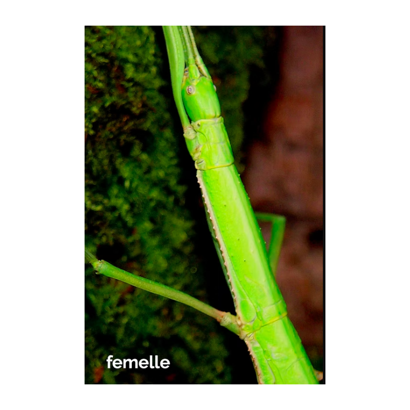 Développement : 5 à 6 mois, dans une atmosphère bien humide. Très facile d’élevage et semble très prolifique. Ne semble pas trop stresser. Il aime être en hauteur et n’a pas la même tendance qu’Aretaon asperimus à rester au sol ou de se cacher sous les écorces. La chaleur ambiante d’une maison suffit, toutefois, on remarque une augmentation de l’activité avec une chaleur autour de 25°C.