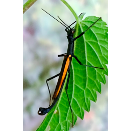 Jeune L3 vendu à l'unité Origine : Australie Alimentation :  Ronce, Chêne, Framboisier, Noisetier. Maintenance : 22° à 25° pour un développement idéal. le Onchestus rentzi est une espèce de phasme facile à élever