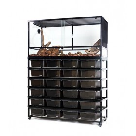 Casiers d'élevage avec roulettes empilables munis de 2 compartiments pour reptiles et animaux de petite taille • Pratique et accès facile • Structure en aluminium • Casier en plastique de qualité alimentaire • 4 roulettes lisses facilitent les mouvements Dimensions : 609x459x233 mm