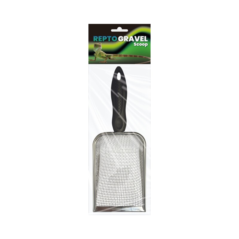 Avec la pelle à gravier Repto, vous pouvez facilement ramasser les saletés de votre terrarium et même tamiser le sable plus fin pour en retirer les plus petites particules.