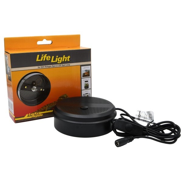 Le Lucky Reptile Life Light Halogène est un couvercle de terrarium multifonctionnel qui assure un éclairage et une régulation de température optimaux dans les petits terrariums. Il est équipé de deux LED lumière du jour et d'une LED clair de lune, qui commutent automatiquement entre l'éclairage diurne et nocturne grâce à un capteur de luminosité intégré. Ce réglage automatique assure des conditions d'éclairage naturelles dans le terrarium et respecte le rythme jour-nuit naturel des animaux. Si la LED clair de lune n'est pas souhaitée pour l'éclairage nocturne, le capteur de luminosité peut être désactivé, permettant ainsi de contrôler le terrarium via une minuterie.