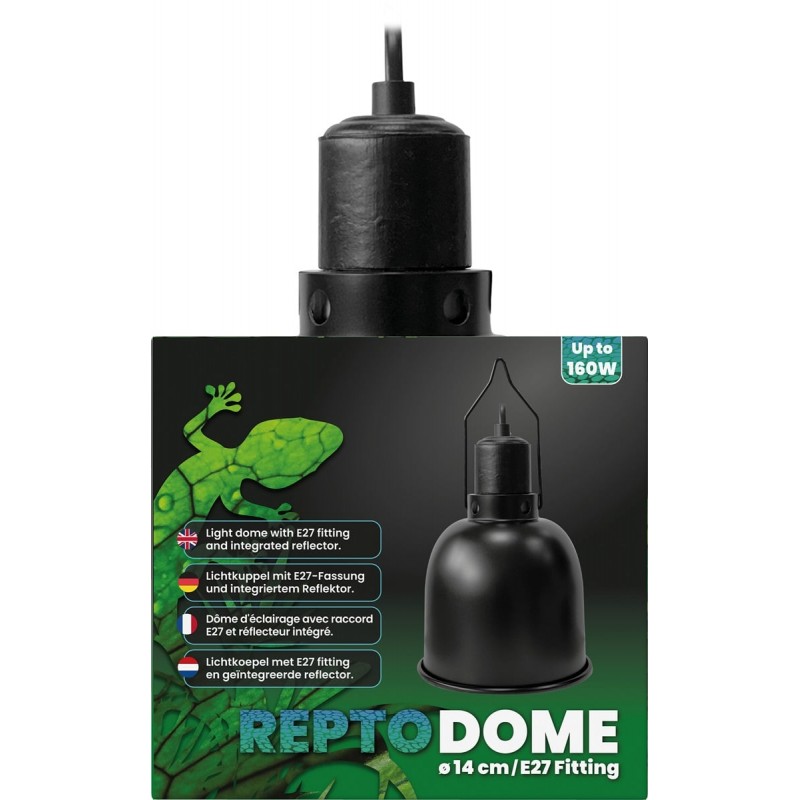 Le Repto Dome 14cm est une douille céramique E27 avec réflecteur, adapté à la plupart des petites lampes chauffantes.