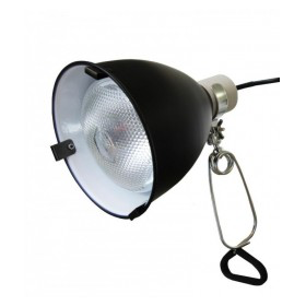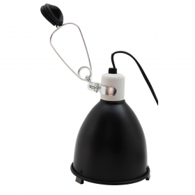 Le nouveau support de lampe Clamp lamp 16, vient s’ajouter à la gamme existante composée actuellement des Black Clamp 14 et 22. Notre premier objectif était de fabriquer un modèle qui puisse recevoir les lampes Mega Sun 26 W, qui puisse être posé sur la grille supérieure du terrarium, et qui soit d’un encombrement limité. Il se pourrait bien que ce soit le modèle idéal pour les Mega Sun 26 W. Si ce modèle peut également recevoir des lampes Ultra Sun 80 et 100 W, attention tout de même à la surchauffe (due à l’espace entre la cloche et la lampe). Mieux vaut le limiter aux lampes Ultrasun 70 W. Pour les lampes céramiques, les modèles 100 et 150 W peuvent être utilisés. Attention : ce modèle est livré avec la pince (clamp) mais sans grille de protection.