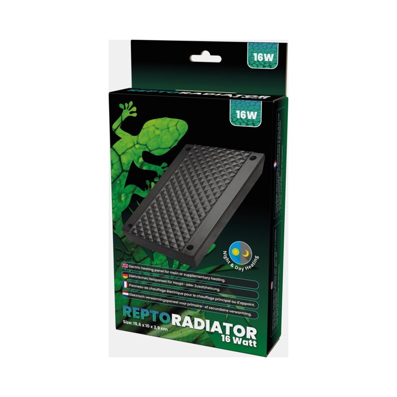 Le Repto Reptile Radiator est un panneau chauffant qui émet de la chaleur dans l'environnement. Ces panneaux sont donc idéaux pour chauffer sans lumière ou en complément de lampes d'appoint.