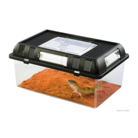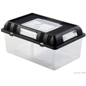Idéal pour le transport d'animaux de terrarium ou de nourriture vivante Excellent pour le logement temporaire ou la quarantaine Porte en plastique transparent facilitant l'accès Facile à nettoyer et à désinfecter 370 x 220 x 250 mm