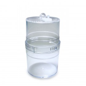 Grâce à la trappe d'alimentation spéciale, de plus grandes quantités de ces minuscules terrariums peuvent également être alimentées en peu de temps. La fonction "Twist and Lock", quant à elle, permet de travailler rapidement et de verrouiller le conteneur en toute sécurité. En même temps, la ventilation peut être ajustée en conséquence. La partie supérieure haute en forme de boîte minimise le risque de fuite des animaux, car les mantides et les tarentules des arbres ont tendance à fuir vers le haut. Cela réduit considérablement le stress des enfants adoptifs. Si vous le souhaitez, vous pouvez même installer une petite LED dans la trappe d'alimentation comme éclairage.