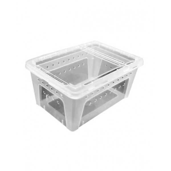 Boîte de transport et d’élevage, et l’alimentation des reptiles et amphibiens. Idéal pour stocker la nourriture vivante ou temporairement en zone de quarantaine. Boîte solide et pratique avec des systèmes d’aération sur les côtés. Ouverture partielle pour nourrir ou nettoyer. Utilisable également pour transporter les reptiles entre le domicile et le vétérinaire.