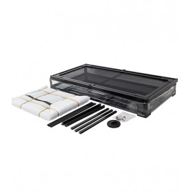 Terrarium en kit avec portes Facile à installer avec passe câbles, possibilité d'immerger le bas du terrarium. Grilles d'aération sur le dessus et latérales, avec une porte battante verrouillable.