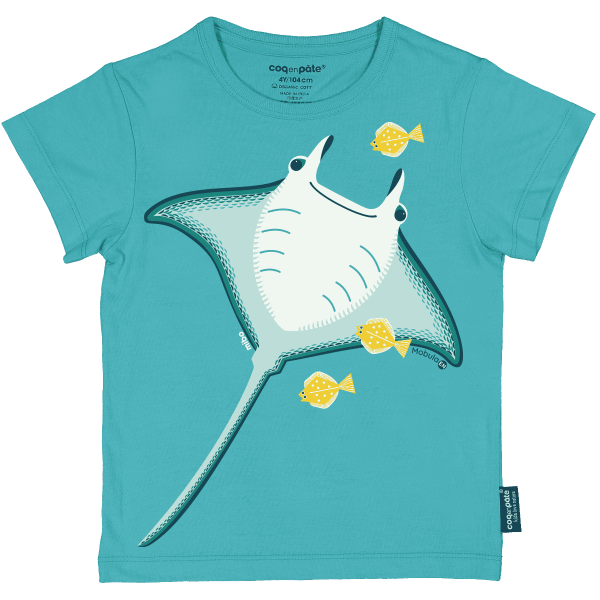 Un thermocollant ainsi qu’un livret présentant cinq espèces de la collection ont été ajoutés à chaque t-shirt pour promouvoir et soutenir ce programme. Il plaira autant aux filles qu’aux garçons tout en sensibilisant à la protection des espèces menacéesAnimal : Le Diable de Mer (imprimé recto-verso)