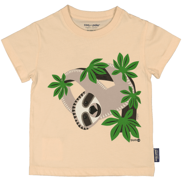T-shirt enfant manches courtes imprimé Paresseux, en coton biologique, illustré par Mibo.