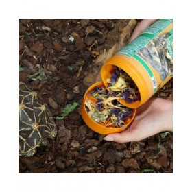 Grande appétence provoquée par les couleurs naturelles des fleurs séchées. Les tortues réagissent fortement aux couleurs vives. Le meilleur aliment ne vaut rien si les tortues ne l’acceptent pas !