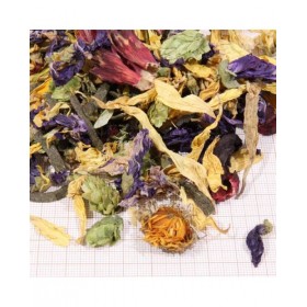 Contenu : fleurs séchées (p. ex. hibiscus, soucis, pétales de tournesol) et bâtonnets alimentaires végétaux (luzerne, épinard, romarin, basilic, etc.) avec minéraux et vitamines naturelles. Sans ajout de colorants ni conservateurs.